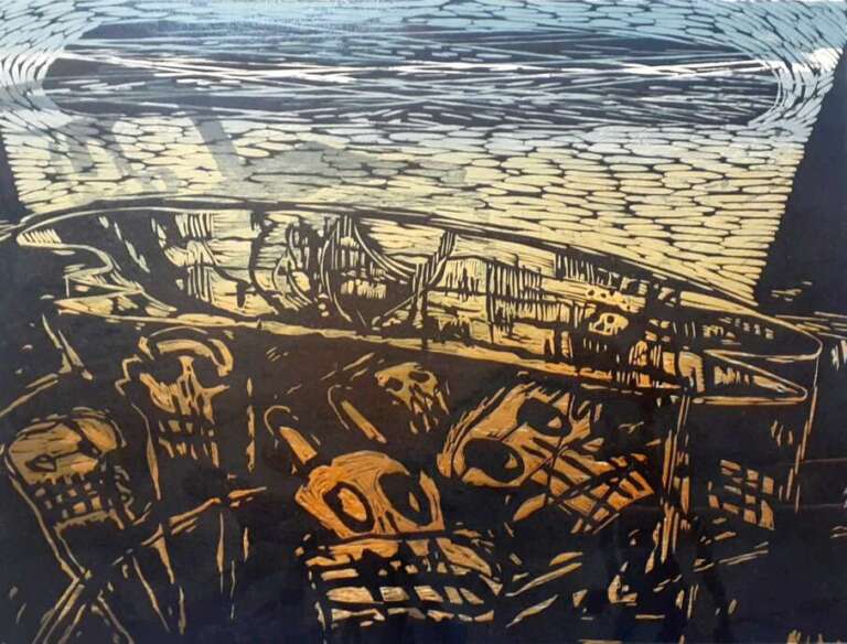 Printmakers from opposite corners of the globe explore the uncertainty of being ‘at the threshold’ in the year 2024, as both South Africa and the United States held democratic elections.