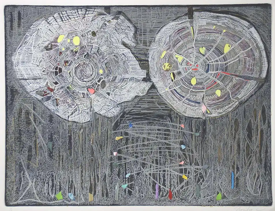 In “The Hidden Life of Trees: What They Feel, What They Communicate – Discoveries from a Secret World,” forest scientist Peter Wohlleben writes about the secret language of the trees, the forest ecosystems and the fungal communication of the ancient forests. Through the exploration of communication systems between the trees the botanical world and us, members of Los Angeles Printmaking Society & special guests investigate the themes of plant intelligence, hidden communication and the transcendent connections between us and the natural world.