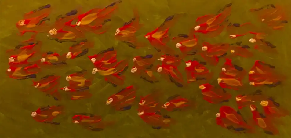 When this variation is carried out optionally atop a small blotting square, just enough of the initial drying-oil/sun-thickened blend is set down so as to cover the surface and leave over it a very shallow excess of unabsorbed oil to take the ensuing additions – which in turn are quite thoroughly mixed in, spread, and flattened with a muller at light hand pressures. And at the end, it was found that the amount of “last trace”, cure-time modulating drying oil could also be exploited in further controlling the output suspension’s consistency, which was especially noticeable if the composition was left standing for (not overlong) periods, rather than being at once collected. Interestingly, since we began already with a classic canvas paint, and progressed “backwards” from the regular uncooked vehicle, with few or no bodied amendments, towards a vehicle entirely “taken over” by a thick (binding) medium, the sequence can be aptly termed “reverse mulling”.